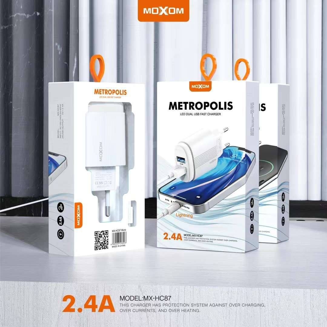 Cargador de Pared Moxom 2.4 Amp con cable USB incluido + 2 puertos USB